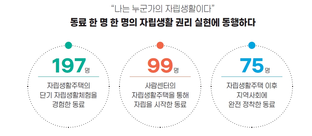 사람센터의 자립생활주택을 통해 자립을 시작한 동료 99명.