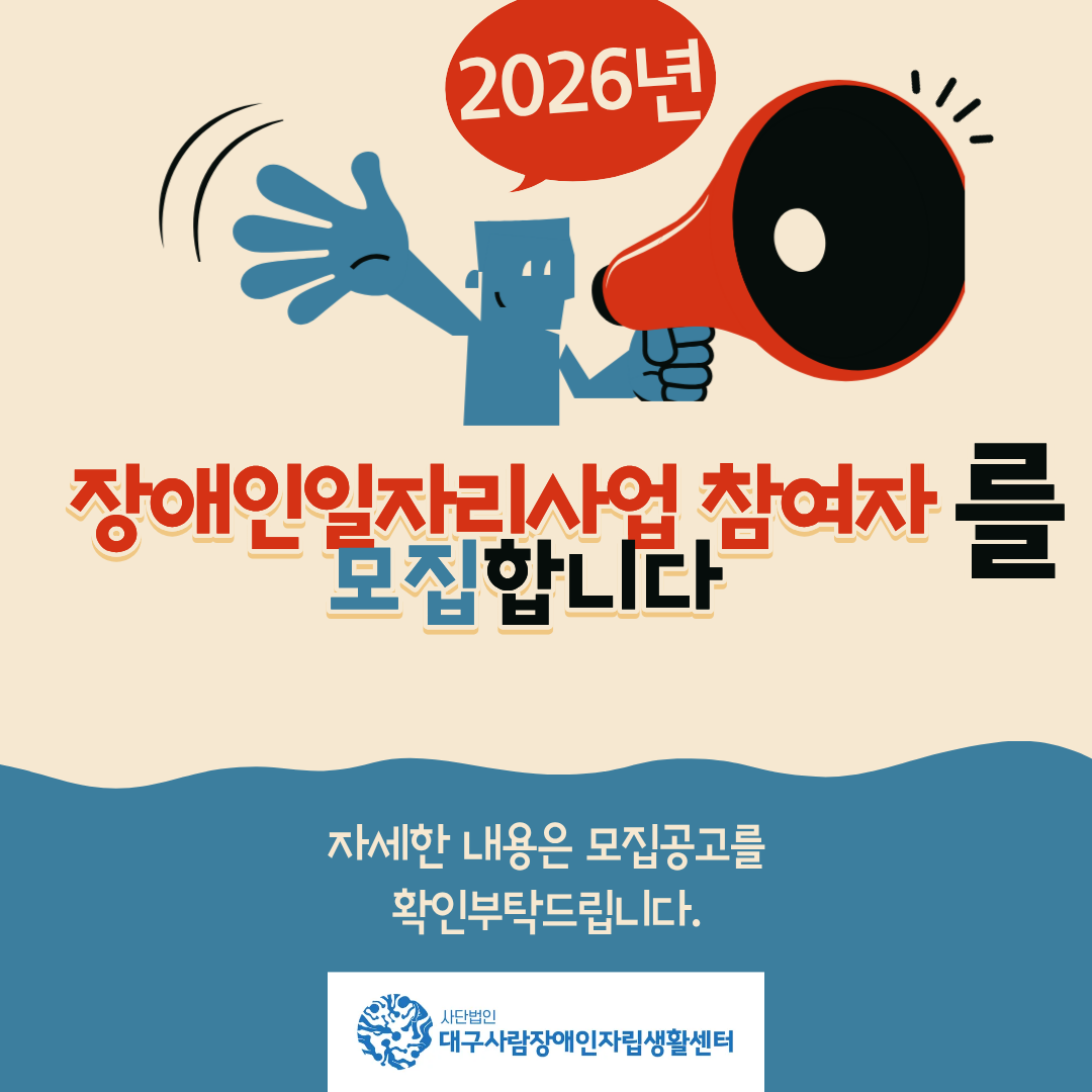 대구사람장애인자립생활센터에서는 장애인의 사회참여 확대와 소득 보장을 위해 2026년 장애인일자리사업 참여자를 모집합니다.