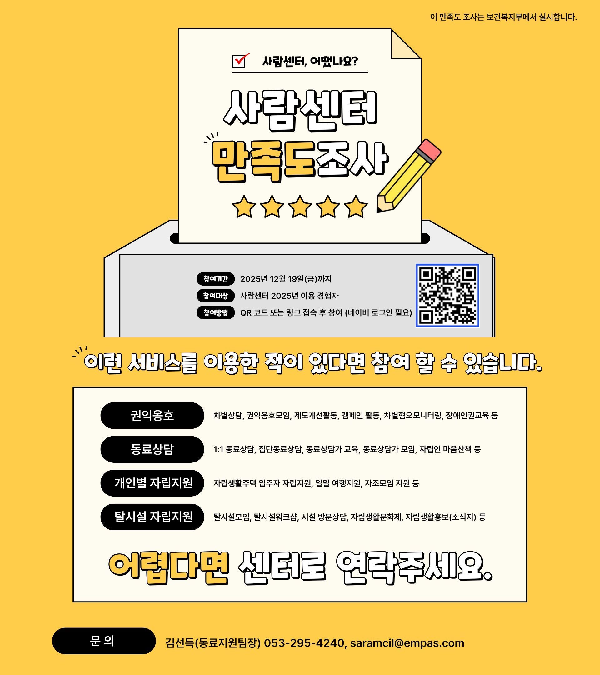 보건복지부가 실시하는 "2025년 장애인자립생활지원센터 만족도조사 안내"를 알려드립니다.
