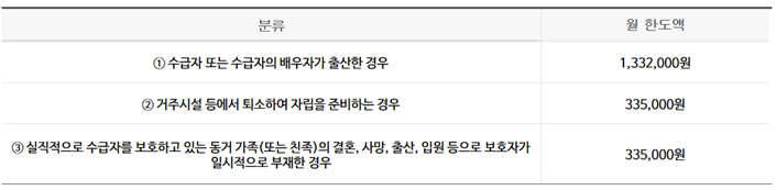 (다만, 수급자 또는 수급자의 배우자가 출산 후 6개월 이내에 한하여 예외적으로 인정).