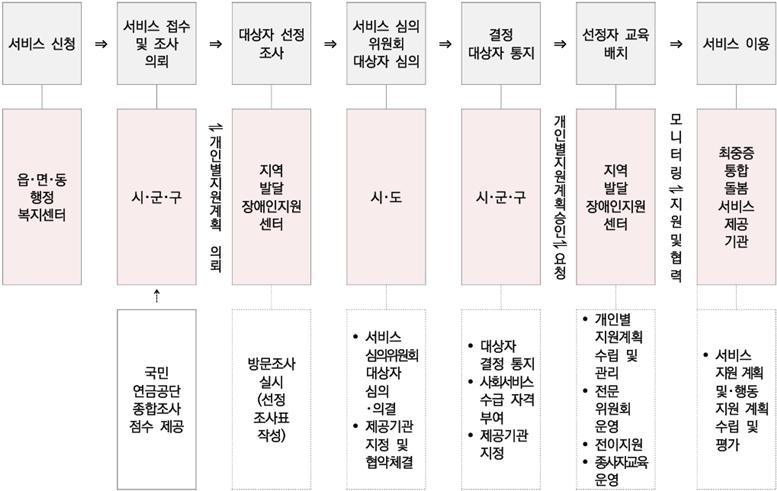 - 급여 대상 발달장애인의 주민등록상 주소지 읍・면・동 행정복지센터